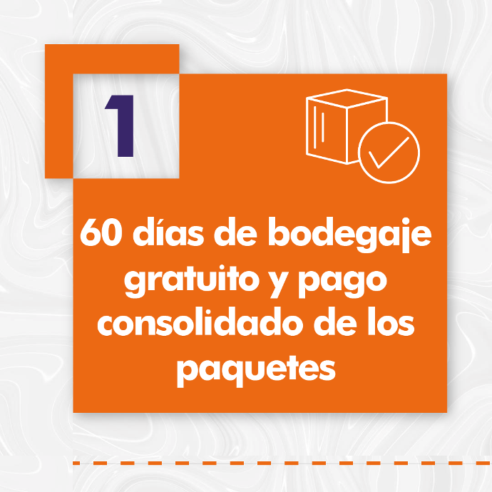 ¿Qué significa esto para ti? Puedes almacenar tus compras en nuestras bodegas en Miami de manera segura hasta por 60 días, sin cargos adicionales. Además, simplificamos tus transacciones financieras al ofrecerte la opción de consolidar los pagos de múltiples envíos en uno solo, lo que te ahorra tiempo y dinero.
