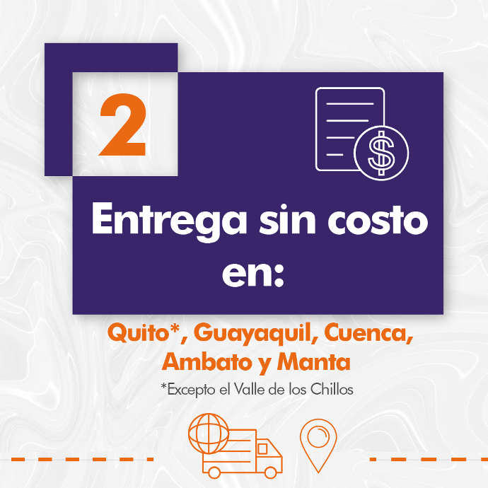 Entrega a domicilio sin costo en: Quito, Guayaquil, Cuenca, Ambato y Manta