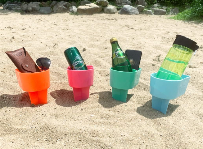 No solo es un portavasos de playa, también un compartimento de almacenamiento cerca de tu silla o toalla en la playa, río, lago, picnics, camping, conciertos al aire libre, eventos deportivos al aire libre, portón trasero, etc.